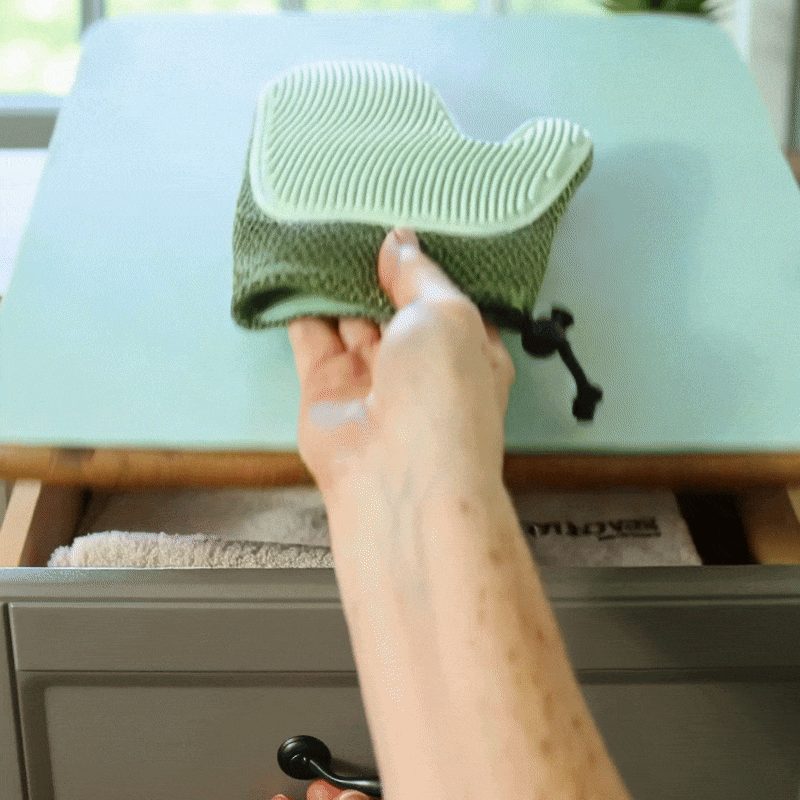 Un seul gant. Plusieurs usages. Moins de poils au quotidien.